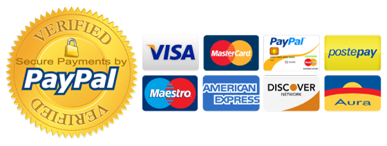 Scegli uno tra i nostri metodi di pagamento e acquista in tutta sicurezza, grazie anche alla connessione protetta SSL tra il tuo dispositivo e il nostro sito.