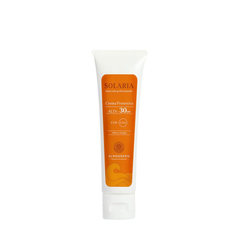 La crema solare protettiva ALTA con SPF 30, adatta per facilitare l’abbronzatura a pelli con fototipo biondo, garantisce una protezione ad ampio spettro dalle radiazioni UVA-UVB.