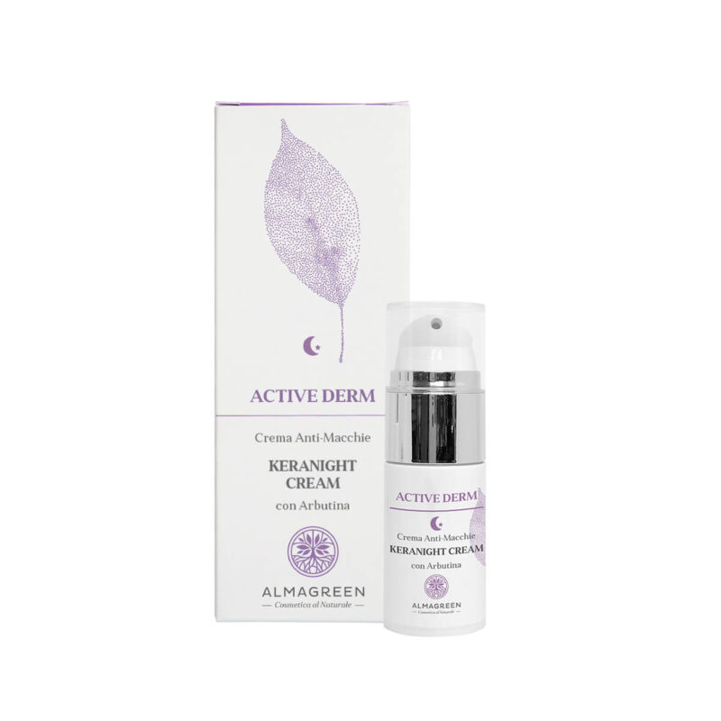 Keranight cream è un trattamento quotidiano depigmentante e naturalmente schiarente, elimina e riduce le macchie e ne previene la ricomparsa, agendo su macchie solari, sulle efelidi, su macchie gravidiche o iperpigmentazioni ormonali. Il trio di principi attivi presenti al suo interno (arbutina, acido mandelico e acido cogico) svolge un’azione graduale consentendo i primi risultati già dopo 10/15 giorni e consolidandoli dopo 8/10 settimane.
