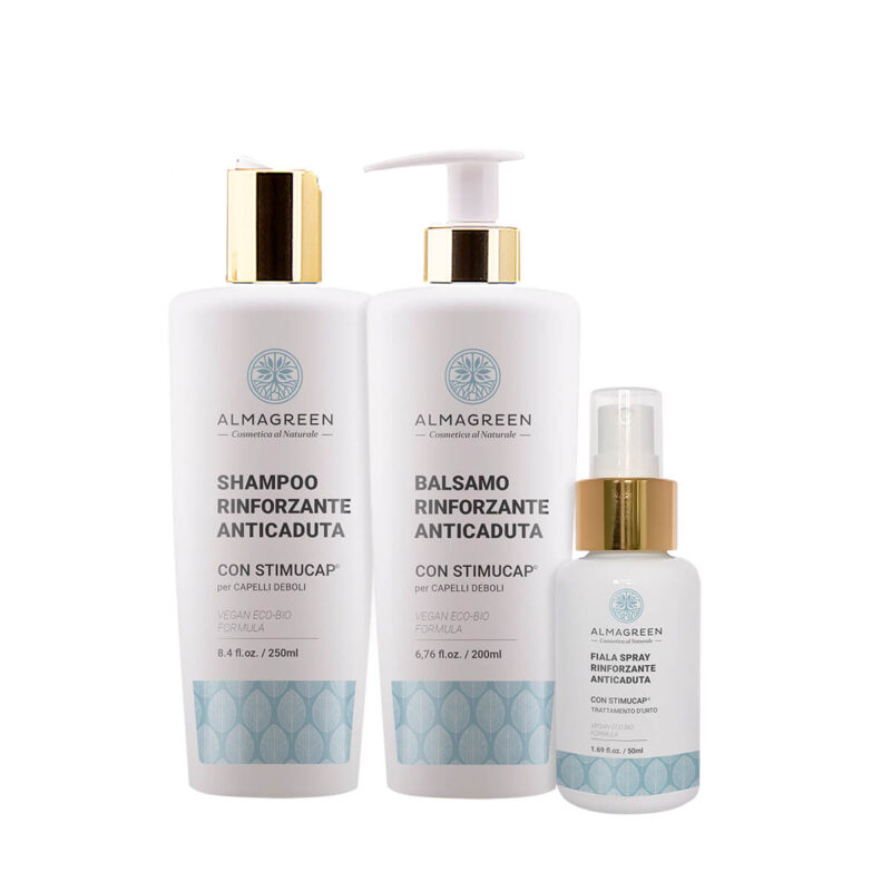 Scopri il nostro Kit Shampoo Balsamo e Fiala rinforzante anticaduta con stimucap®. Un kit completo per rinforzare e prevenire la caduta dei tuoi capelli: