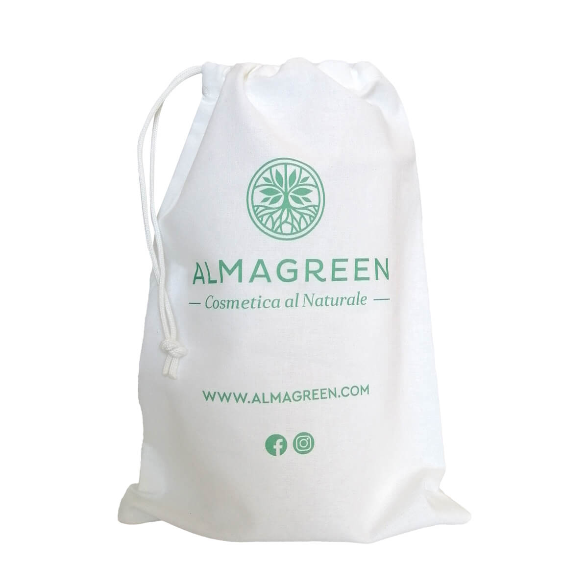 Sacca ALMAGREEN con pratico sistema di chiusura a coulisse, per mantenere il suo contenuto al sicuro. Realizzata in cotone 100% naturale.