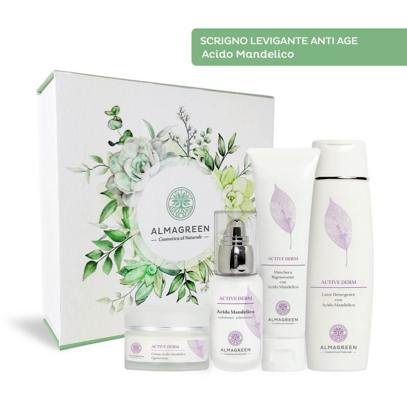 Acquista subito lo Scrigno levigante antiage con acido mandelico. Il kit comprende 4 prodotti ed è specificatamente pensato per i trattamenti anti-età.