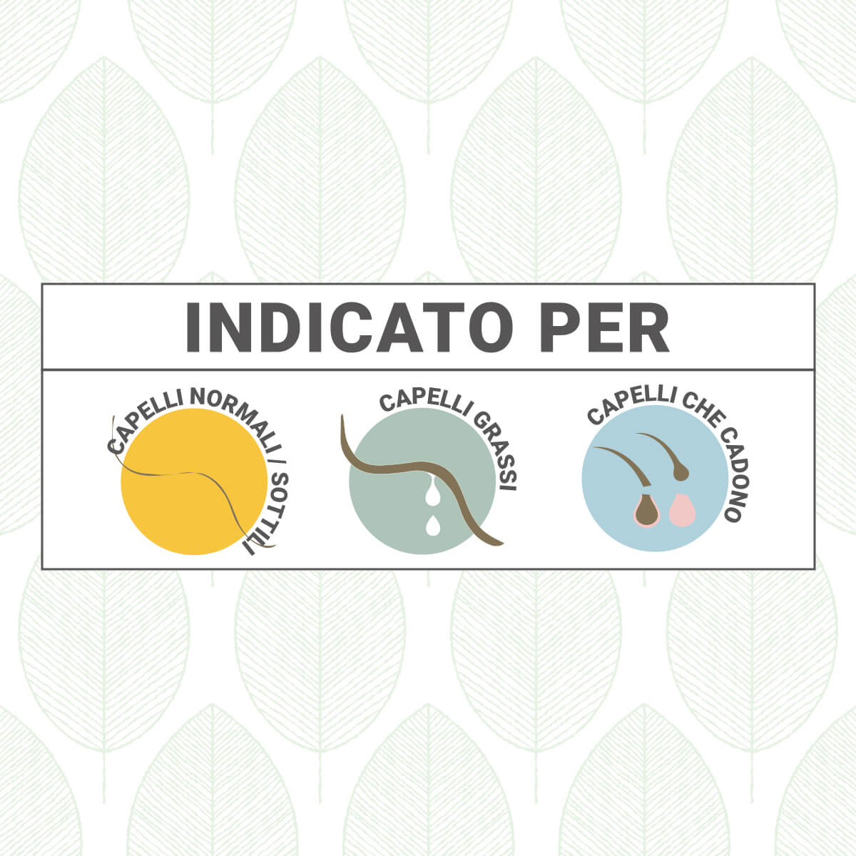 L’innovativa miscela di tensioattivi di origine vegetale, deterge delicatamente senza impoverire la barriera idrolipidica della cute. Il Luppolo, la Camomilla e l’Avena biologica con l’aggiunta di Pentavitin®, aiutano a rinforzare il capello e lo rendono più morbido e rimpolpato. La cannuccia di palude aiuta a trovare il naturale equilibrio della cute e a riparare eventuali danni dati da agenti aggressivi e frequenti lavaggi.